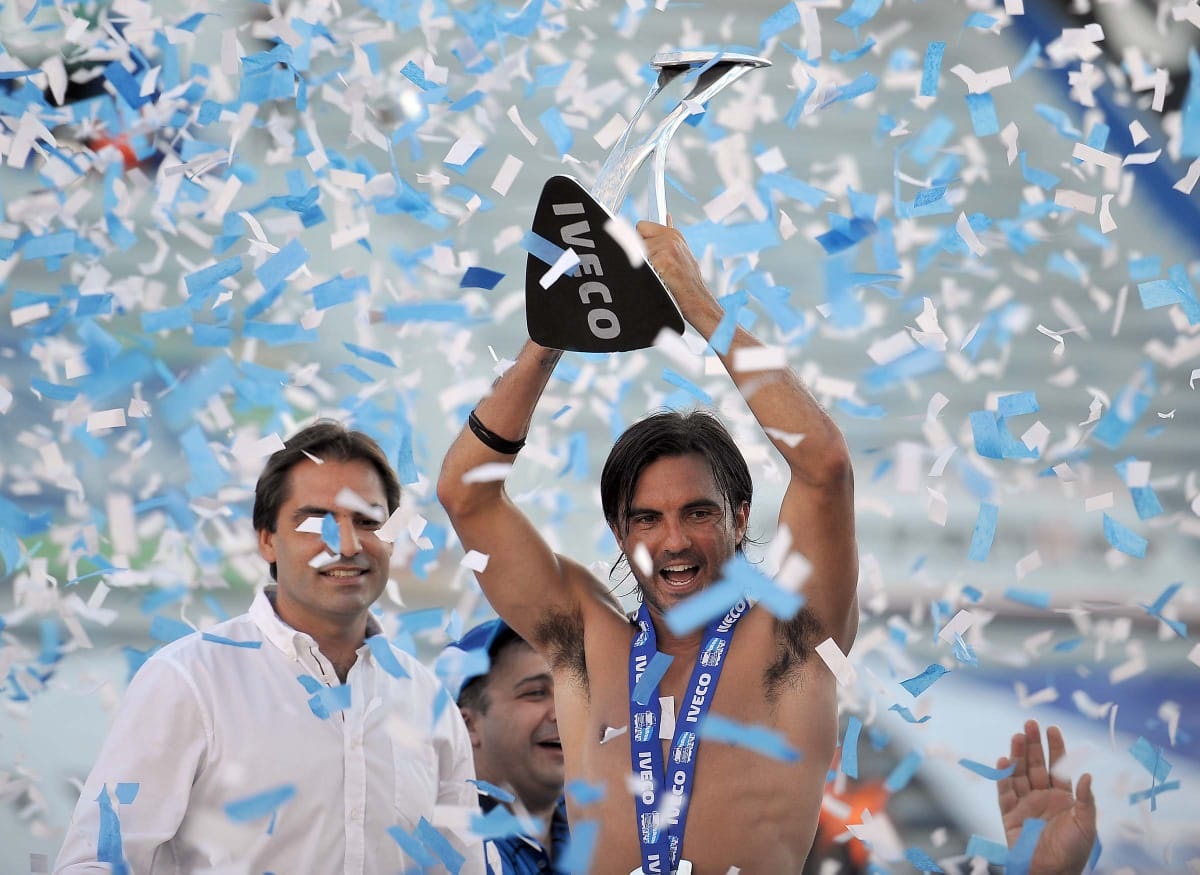 El Poroto y el trofeo del Campeón.